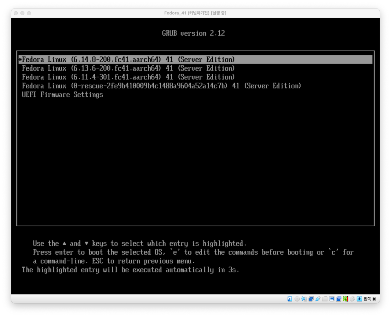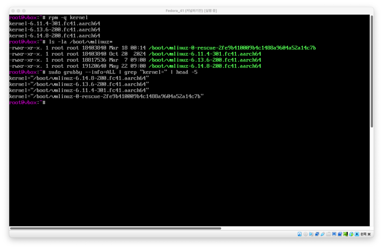 - Fedora는 이전 커널을 보존하여 문제 발생 시 복구할 수 있도록 합니다.