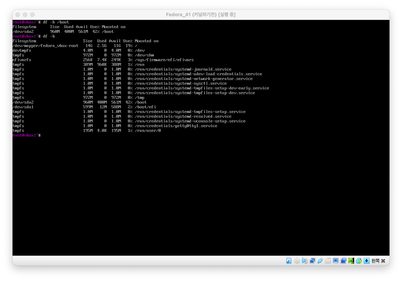 # /boot 파티션 용량 확인